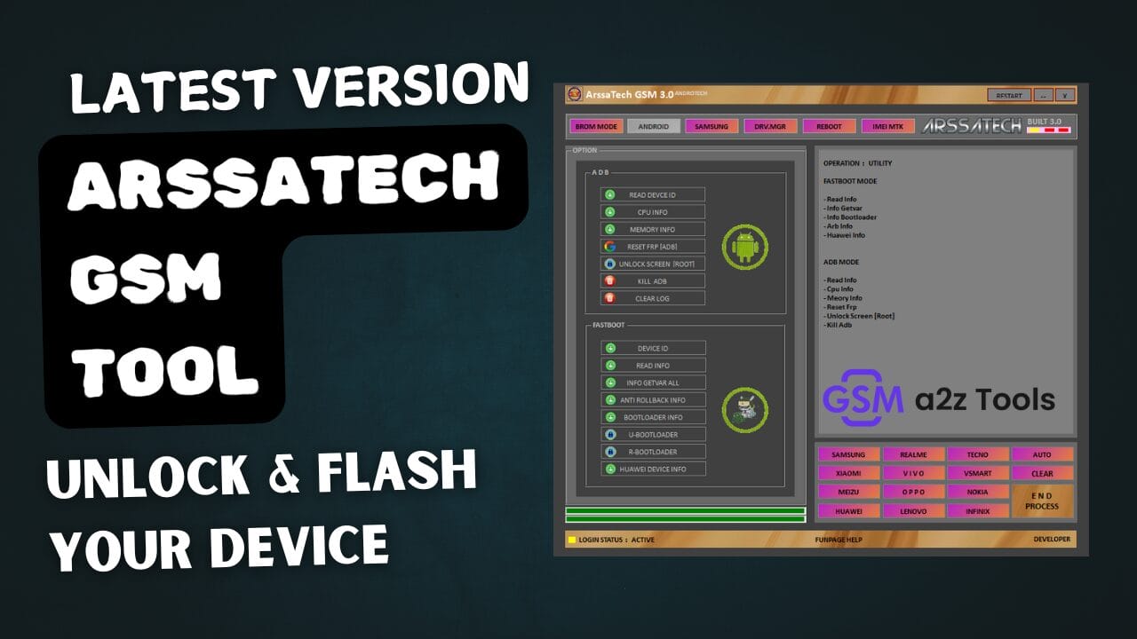 Arssatech Gsm Tool Is A Versatile Software Solution That Was Created For Mobile Device Servicing. It Supports Various Functionalities, Including Brom Mode For Unlock Service And Backup/restore Operations, As Well As Android Adb Mode And Fastboot Mode To Facilitate Device Management Seamlessly.